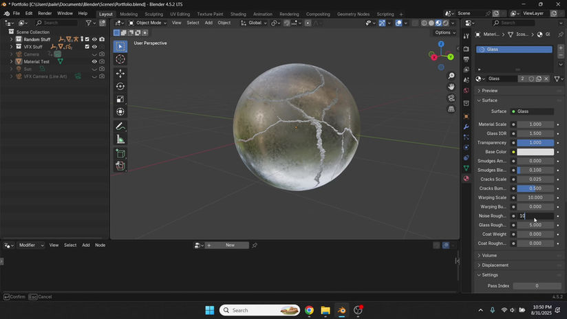 Adjustable parameters allow for control over fog density, surface cracks, and distortion noise, making it versatile for both realistic and stylized props.